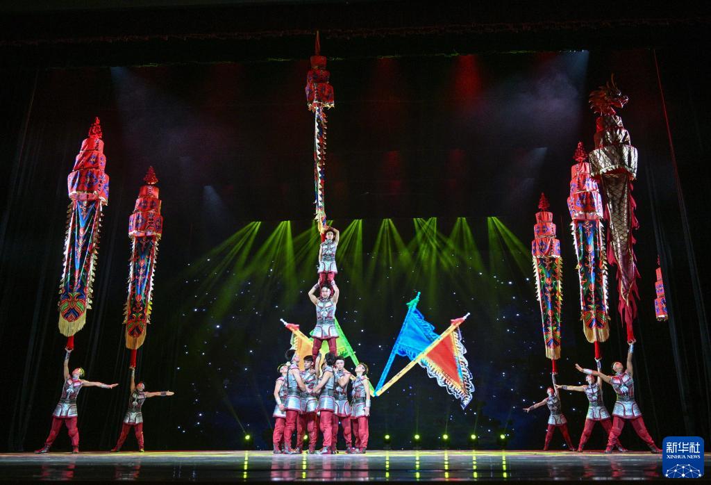 这是沧州杂技团、吴桥杂技学校带来的杂技《龙跃神州——中幡》(11月17日摄)。