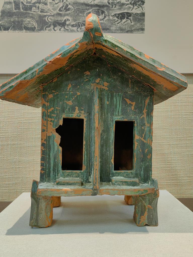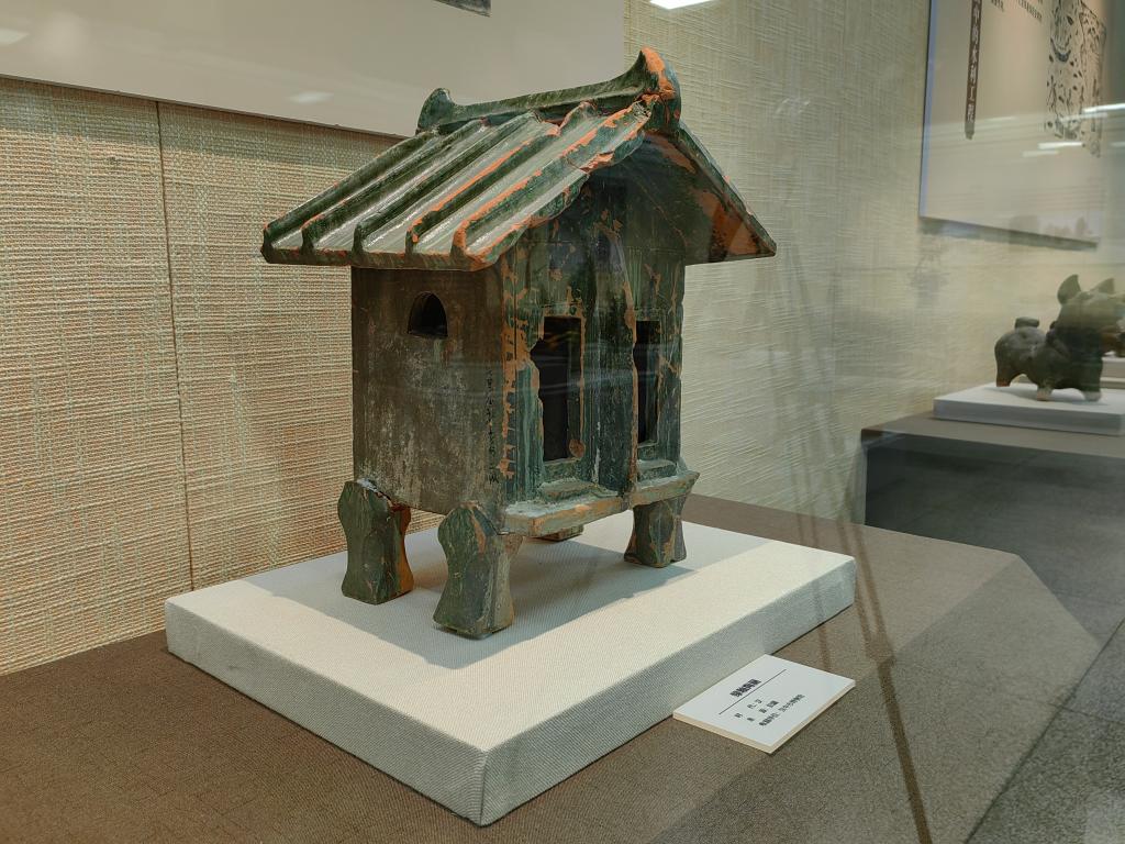 另一件陪葬文物是出土于汉中城东季丰村的汉代绿釉陶厕,高40厘米,长22.5厘米,宽15.5厘米,材质为红陶质,通体施绿釉,悬山式屋顶。“虽然是殉葬冥器,但汉代葬俗的中心思想之一就是‘视死如生’,因此这件厕所能较为真实地反映出当时人们的起居习惯。”汉中市博物馆馆长卢辉说。