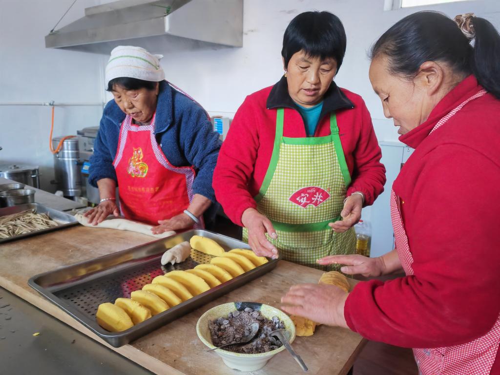 2023年11月14日,马家峪村老年餐厅养老护理员在准备晚餐。新华社记者魏飚 摄