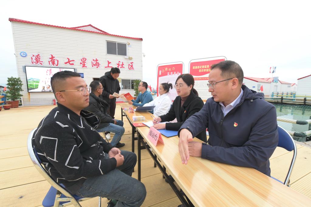 当日,恰逢霞浦县纪委监委在渔排上“摆摊设点”开展信访工作,公职人员与群众坐板凳、话家常,听取百姓诉求。一位叶姓的渔民反映村农贸市场秩序混乱,摊点设置不合理,村委管理效率偏低等。工作人员立马记录在册,并留下渔民联系方式,承诺在5天内反馈工作进展。
