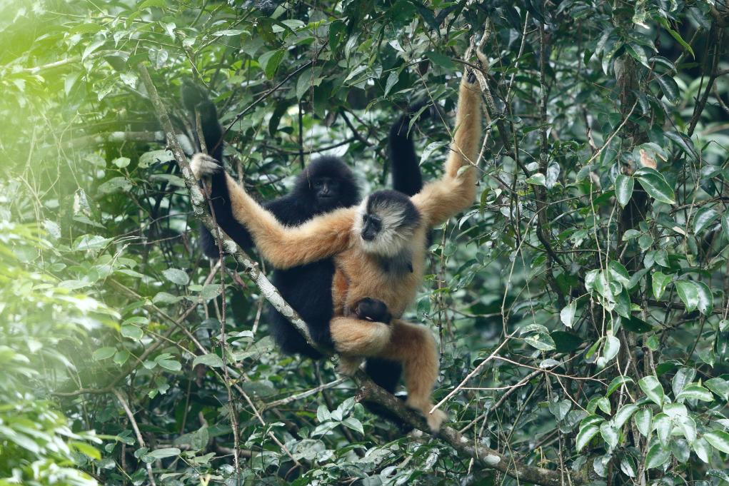 2011年,中越双方签订合作备忘录,开展联合调查、保护交流会和联合巡护执法,为东黑冠长臂猿打造宜居栖息地。10多年来,中越两国跨境携手合作,东黑冠长臂猿栖息地得到有效修复。