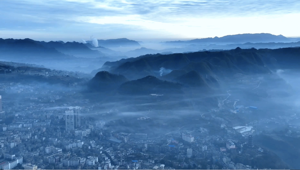 日前,地处乌蒙山区的云南省昭通市镇雄县出现唯美的晨曦雾霭景观。从空中俯瞰,群山与楼宇在云雾中时隐时现,蔚为壮观。