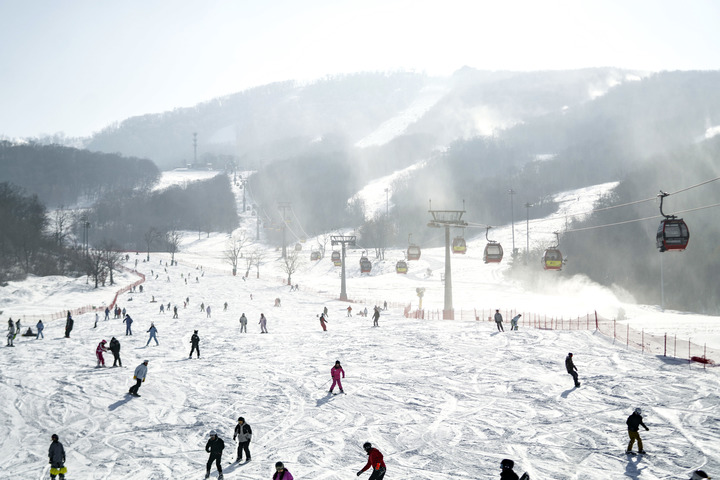 图为滑雪爱好者在吉林市万科松花湖度假区滑雪(新华社记者许畅摄)