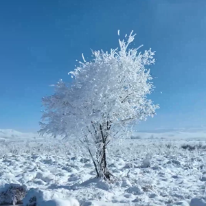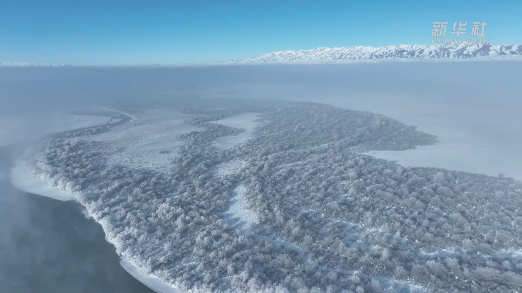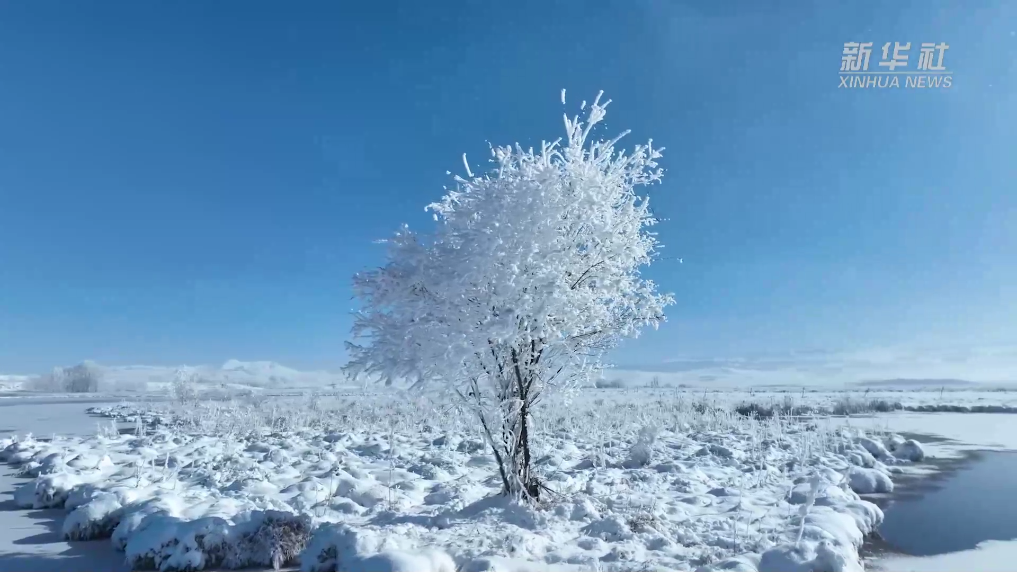 近日,受降雪和低温天气影响,新疆伊犁哈萨克自治州昭苏湿地公园出现雾凇景观。