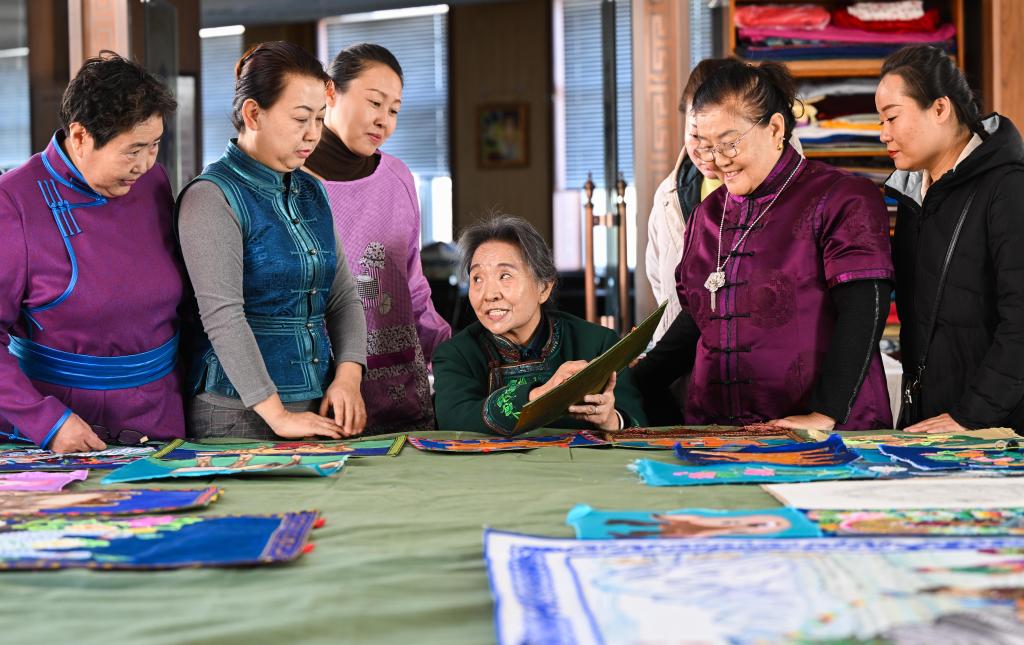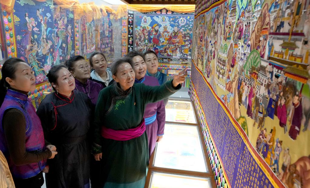 2021年5月,蒙古族唐卡(马鬃绕线堆绣唐卡)正式列入国家级非物质文化遗产代表性项目。年近八旬的陶格日勒依旧在指导培训农牧民,将这项非遗技艺更好地传承下去。