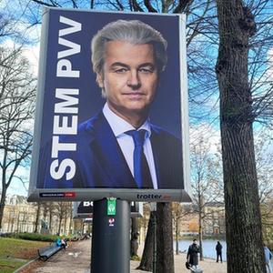 这是11月15日在荷兰海牙市拍摄的一幅荷兰极右翼自由党领导人海尔特·维尔德斯的竞选宣传画。 新华社记者 王湘江 摄