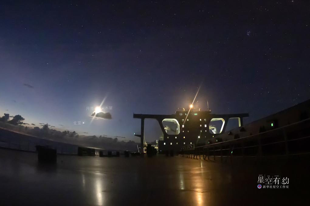 江苏星空摄影爱好者邵曙光2023年2月22日在大西洋上行进的“海珠荣兴”轮上拍摄的金星、木星合月。(本人供图)