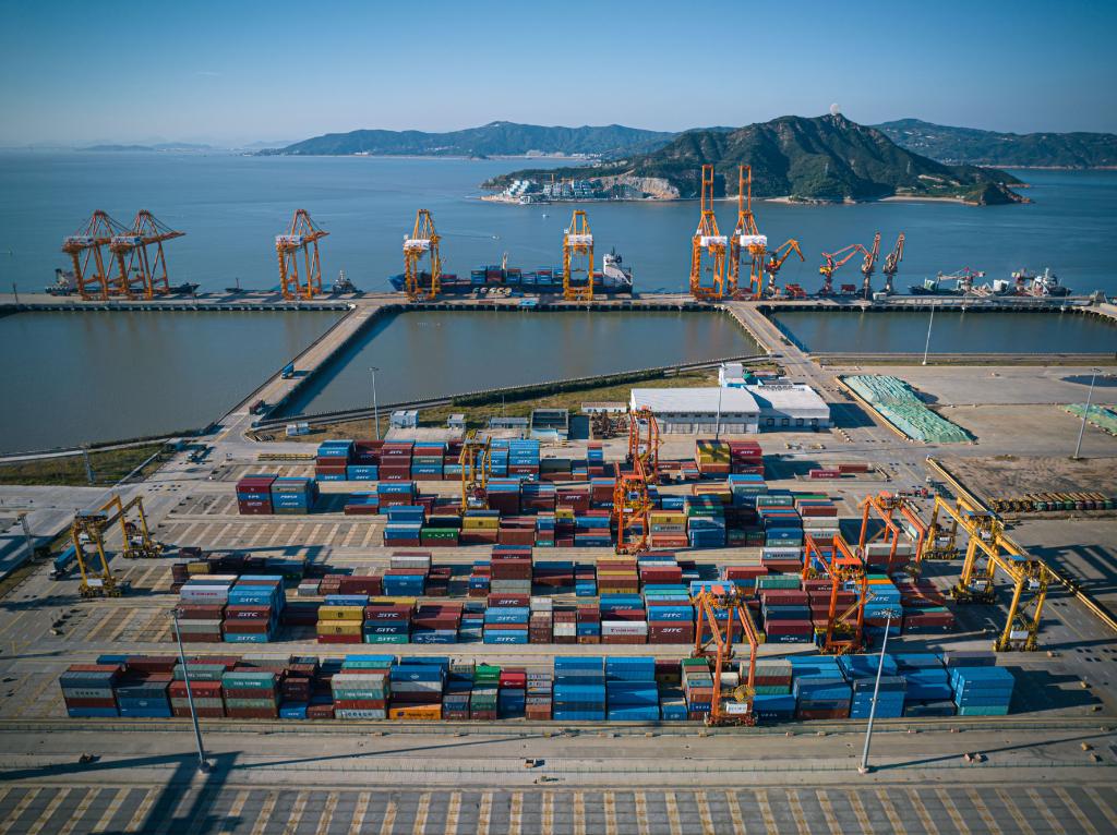 这是11月22日拍摄的温州港状元岙集装箱码头。 新华社记者江汉摄