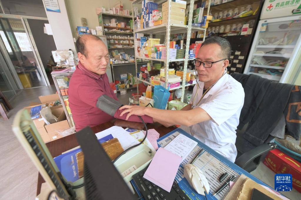 11月15日,下岐村卫生所村医在为村民王建德(左)进行健康检查。