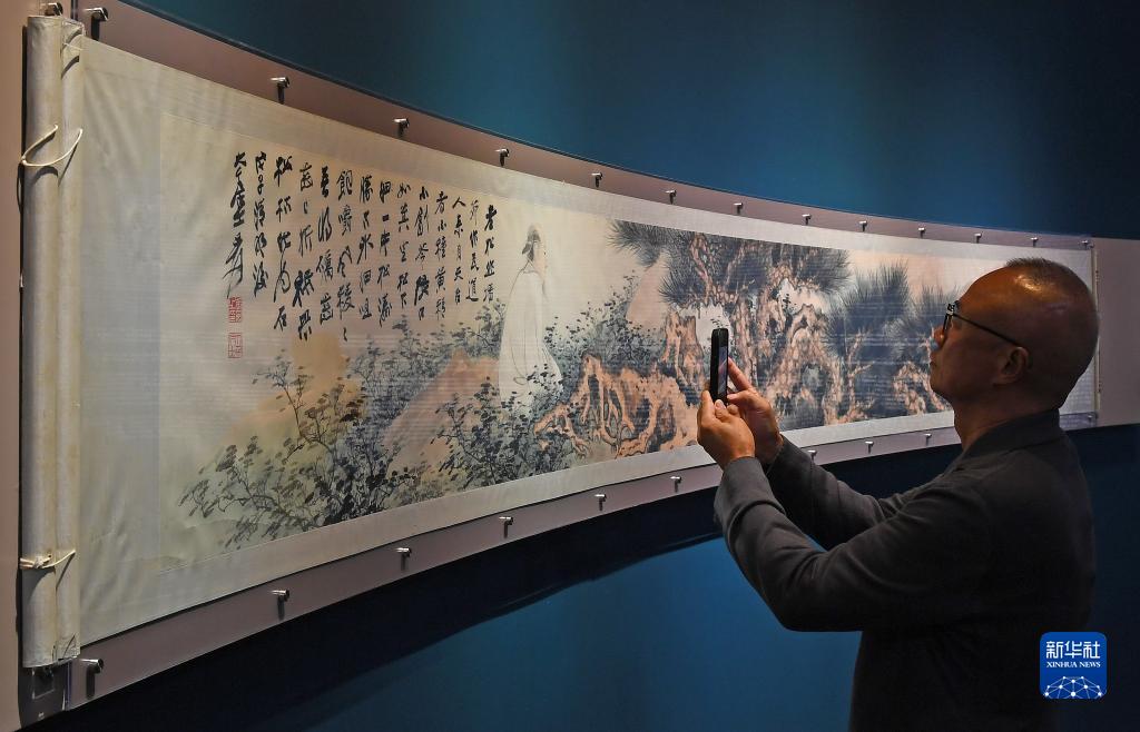 11月24日,在香港会议展览中心,观众拍摄张大千作品《天台道者》。新华社记者 陈铎 摄