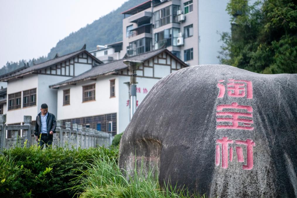 10月11日在湖北省郧西县下营村拍摄的“淘宝村”标志。新华社记者伍志尊 摄