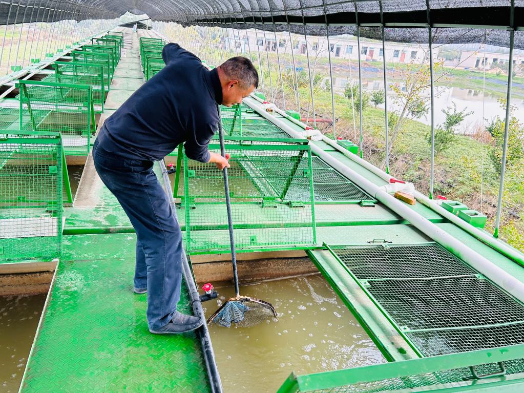 江求智查看马口鱼生长情况。新华社记者万芃琦 摄