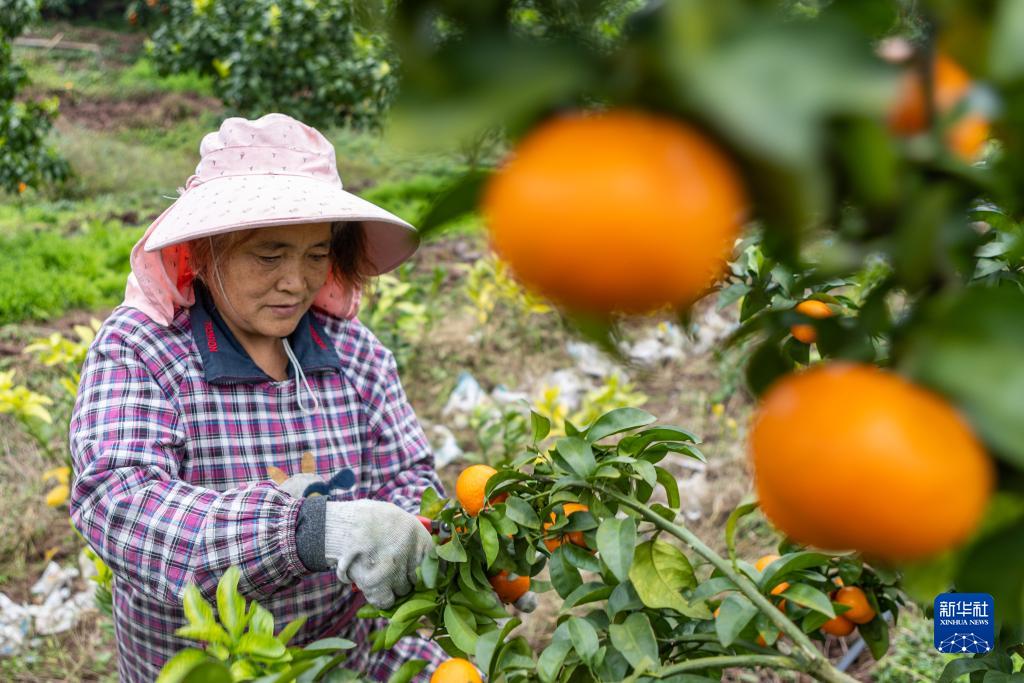 11月24日,在重庆市开州区竹溪镇大海村的一个柑橘种植基地,村民在采摘砂糖橘。