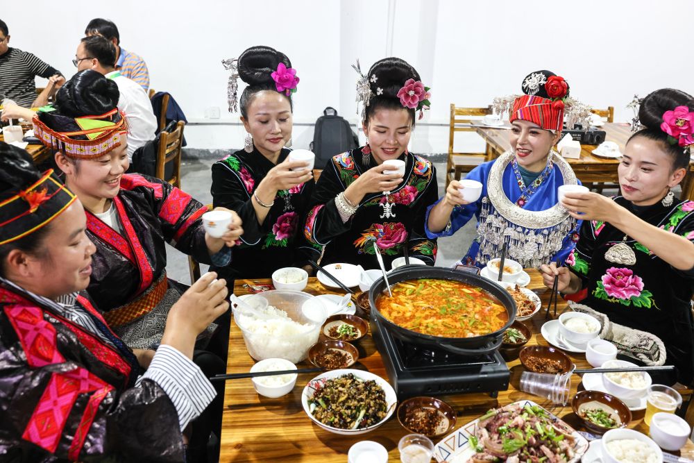 “苗族舞龙嘘花节、施洞独木龙舟节、苗族姊妹节、全国和美乡村篮球大赛等一系列文旅、体旅活动,让台江县的旅游产业快速发展。”台江县县长杨德昭说,2022年,台江乡村篮球大赛火爆出圈以来,赛事期间累计接待游客超150万人次,带动旅游及综合收入超18亿元。今年前三季度,旅游接待人数同比增长60.46%,旅游综合收入同比增长91.63%。