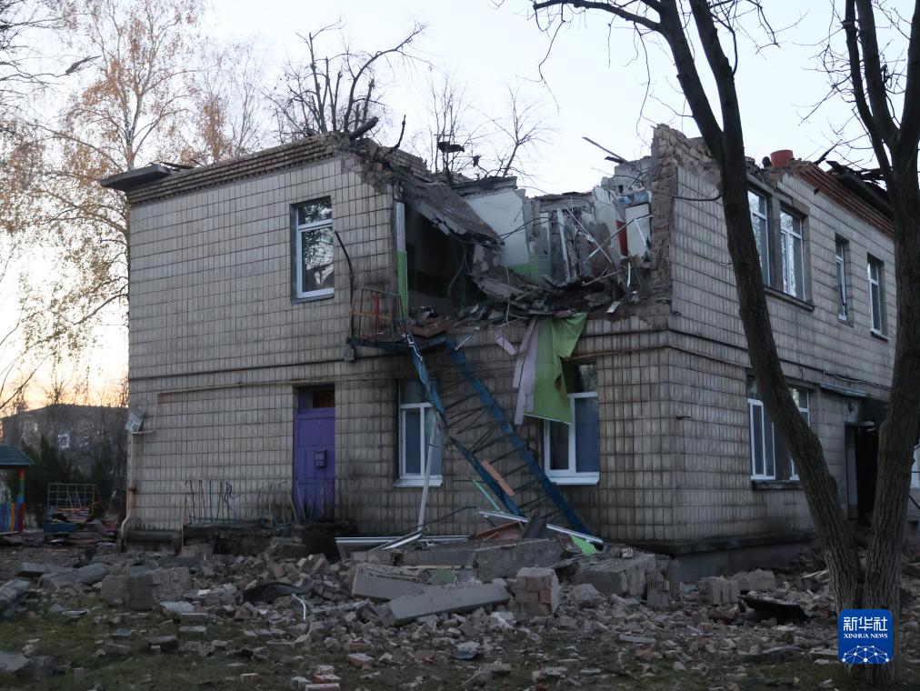 11月25日,在乌克兰基辅市,一栋建筑屋顶被无人机碎片击中。新华社发(罗曼·佩图什科夫摄)