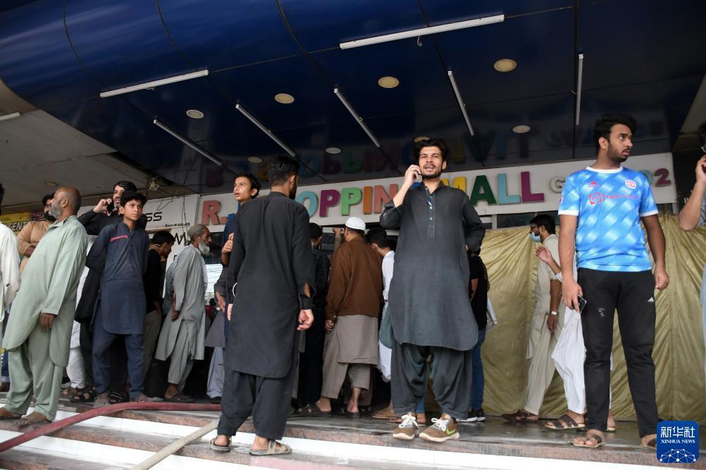 11月25日,在巴基斯坦卡拉奇,人们聚集在发生火灾的商场外。 新华社发