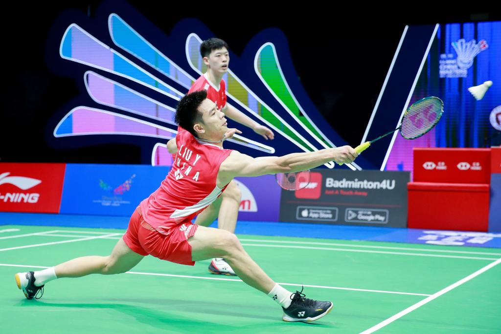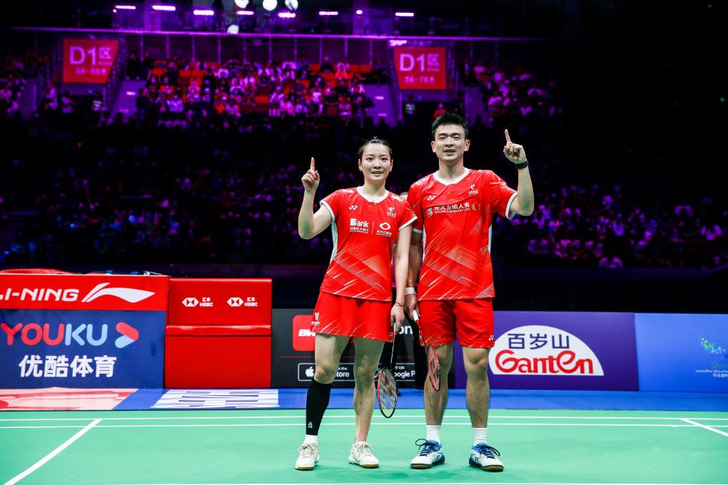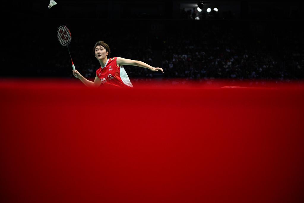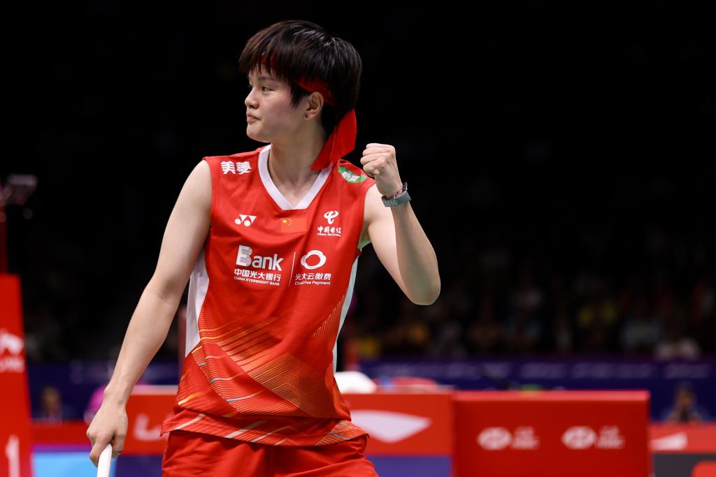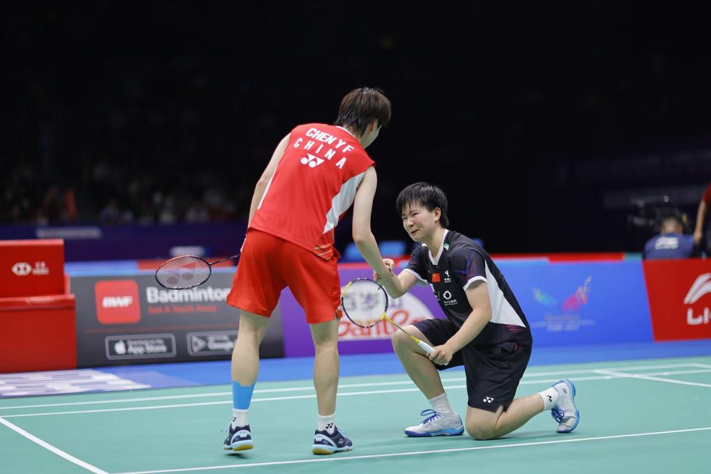 ↑何冰娇在比赛中受伤,陈雨菲上前询问