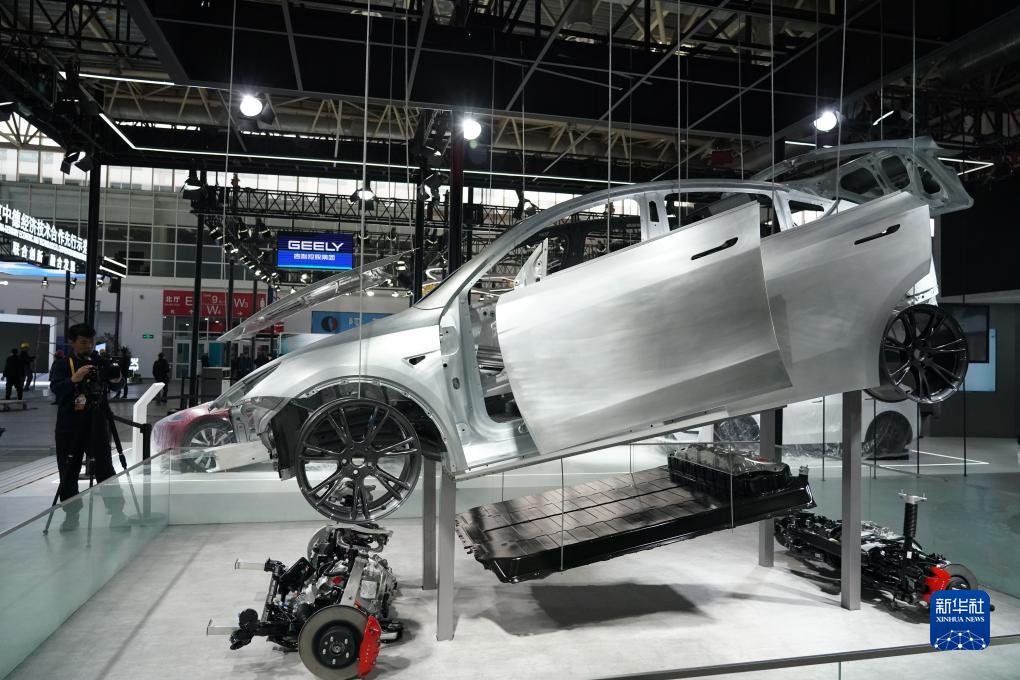 这是11月26日在中国国际供应链促进博览会智能汽车链展区拍摄的吉利汽车集团展位。新华社记者 任超 摄