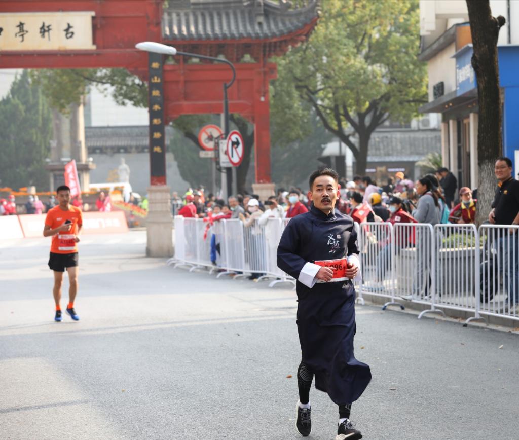新华社绍兴11月27日电(记者曹奕博、胡佳丽)宋服飘飘,头戴乌纱帽,步履轻盈,26日,在镜湖旁挤满了马拉松跑者的绍兴市奥体中心,记者一眼便瞥见了“陆游”。