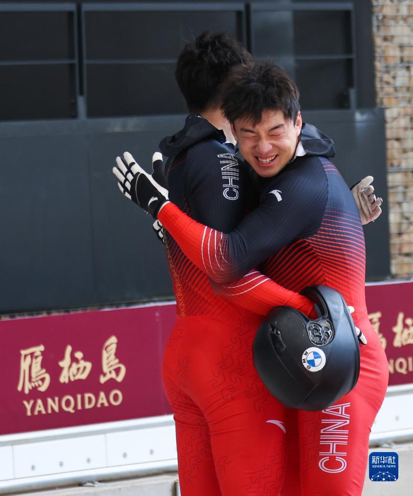 11月28日,朱自龙(右)夺冠后和队友吴青泽庆祝。新华社记者 王楷焱 摄