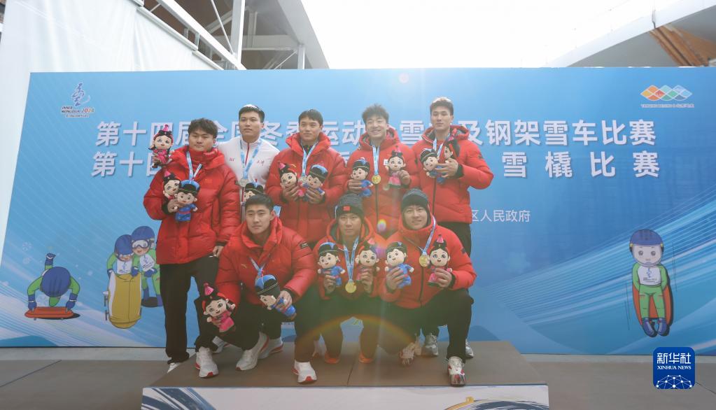 当日,第十四届全国冬季运动会男子四人雪车比赛在国家雪车雪橇中心举行。李纯键(河北)/吴青泽(吉林)/朱自龙(陕西)/魏鹏(山东)获得冠军、孙楷智(辽宁)/丁嵩(天津)/叶杰龙(浙江)/甄恒(上海)获得亚军。