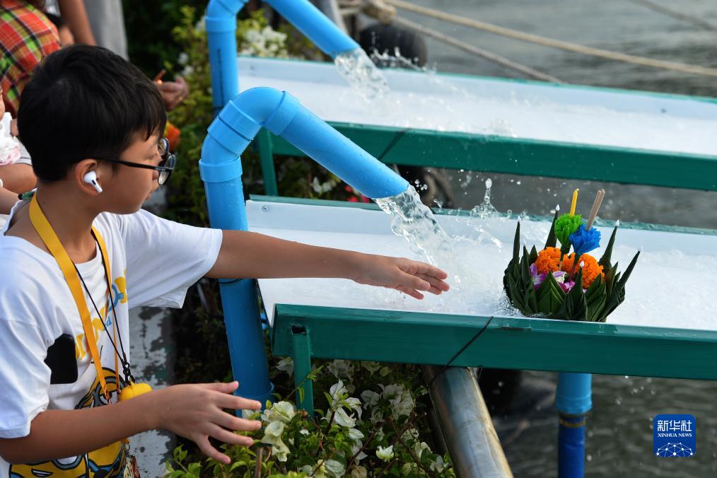当日是泰国传统节日水灯节,泰国民众前往河流沿岸施放水灯,许愿祈福。