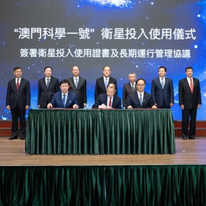 澳门特区行政长官贺一诚、澳门中联办主任郑新聪、国家航天局局长张克俭出席活动,见证“澳门科学一号”卫星投入使用证书、长期运行管理协议签署。与会人士共同为“逐梦苍穹 探索深海——中国航天航海科技荟澳”科普展览以及月壤首次入澳展示揭幕,并启动第二届澳门航天发展论坛。