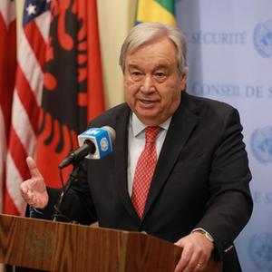 11月27日,联合国秘书长古特雷斯在纽约联合国总部向记者讲话。新华社记者 谢锷 摄