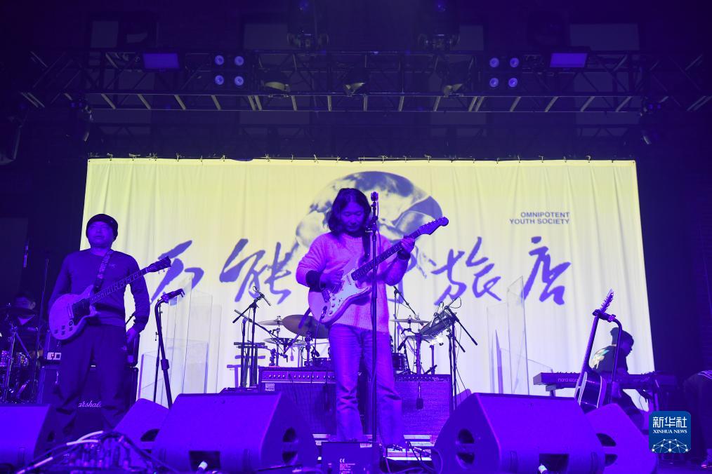 11月26日晚,万能青年旅店乐队在美国纽约举行的“有朋自东方来”音乐节上表演。新华社记者 李睿 摄