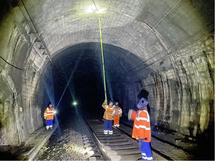 兴安岭隧道内,工人在进行打冰作业。王宏 摄