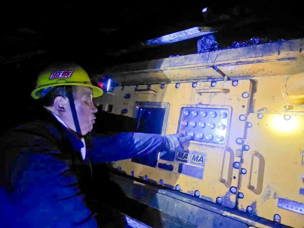 工人师善坤在操作采煤设备。新华社记者王怡静 摄