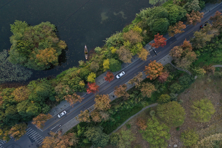 这是无人机拍摄的杭州西湖杨公堤附近的景色。新华社记者 黄宗治 摄