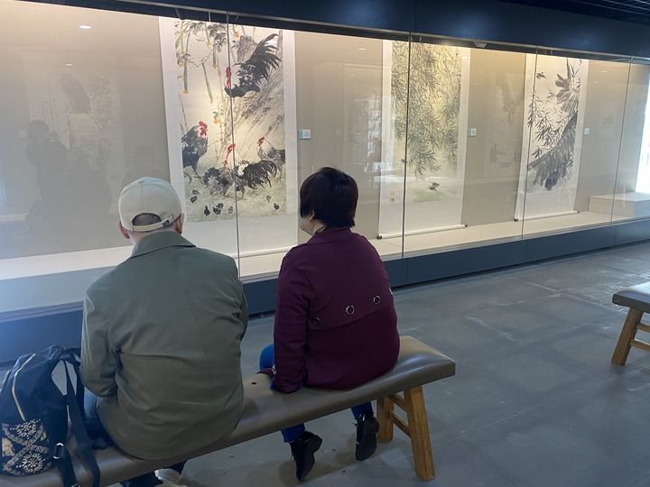 由抱青会馆转型的杭州国画院美术馆内,一对老夫妇在赏画。新华每日电讯记者 朱涵 摄