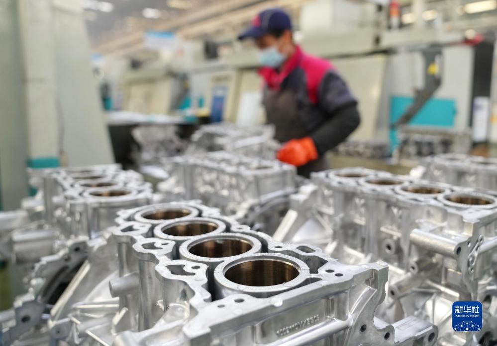 11月29日,工人在河北省顺平县一家汽车发动机缸体企业的生产车间工作。