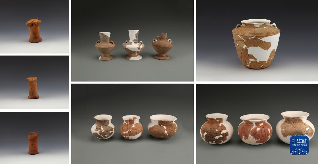 福建平潭岛龟山遗址出土的部分陶器(拼板照片)。
