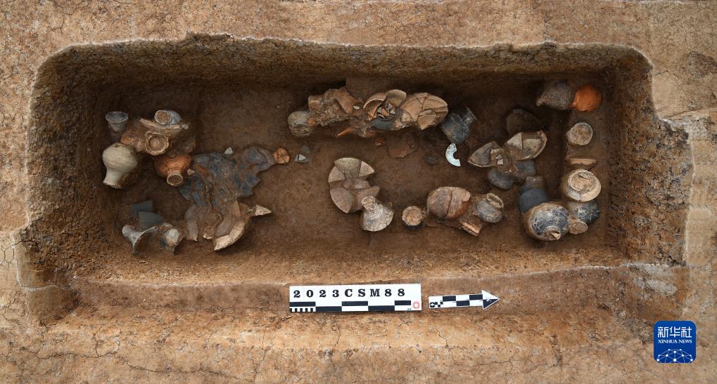江苏常州寺墩遗址出土的崧泽文化墓葬M88俯视照。