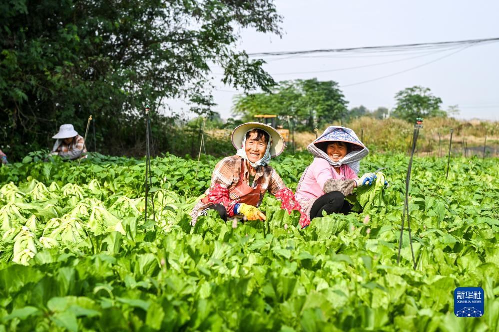 11月29日,在广西贵港市港北区,村民在采收蔬菜。