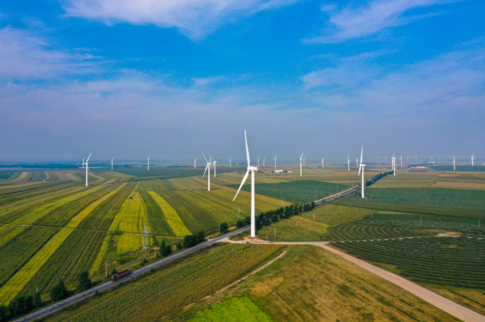 迎风而动的大风车是内蒙古草原上随处可见的风光。