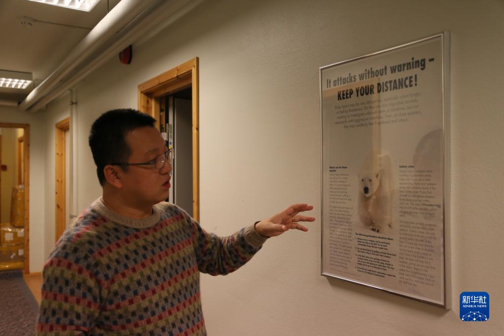 11月12日,在挪威新奥勒松的北极黄河站,中国极地研究中心副研究员李斌讲述防北极熊知识。新华社记者 张玉亮 摄