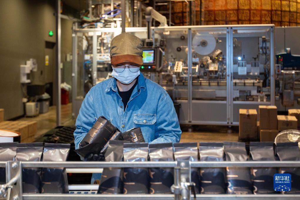11月24日,生产伙伴在星巴克臻选上海烘焙工坊检查咖啡豆包装。