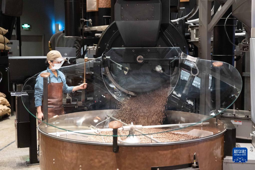 11月24日,烘焙师在星巴克臻选上海烘焙工坊操作烘焙设备。