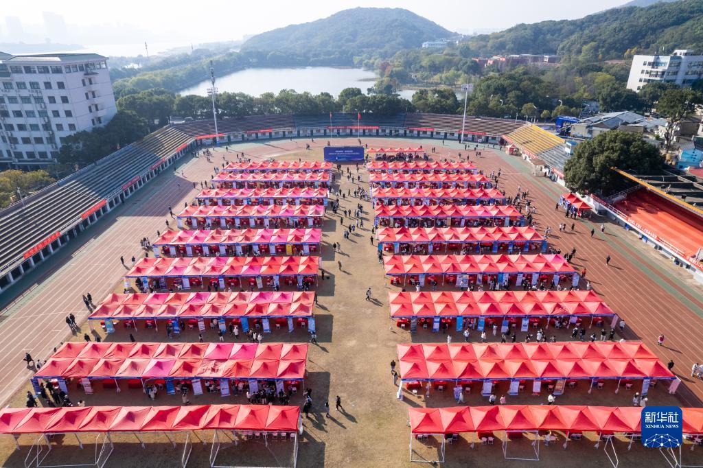 这是12月1日在湖南师范大学体育场拍摄的招聘会现场(无人机照片)。