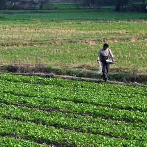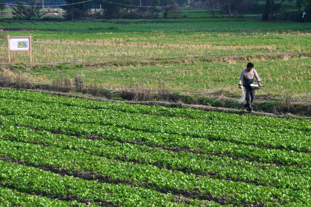11月28日,四川省三台县立新镇春光村一名村民正在蔬菜地里施肥。新华社记者高健钧 摄
