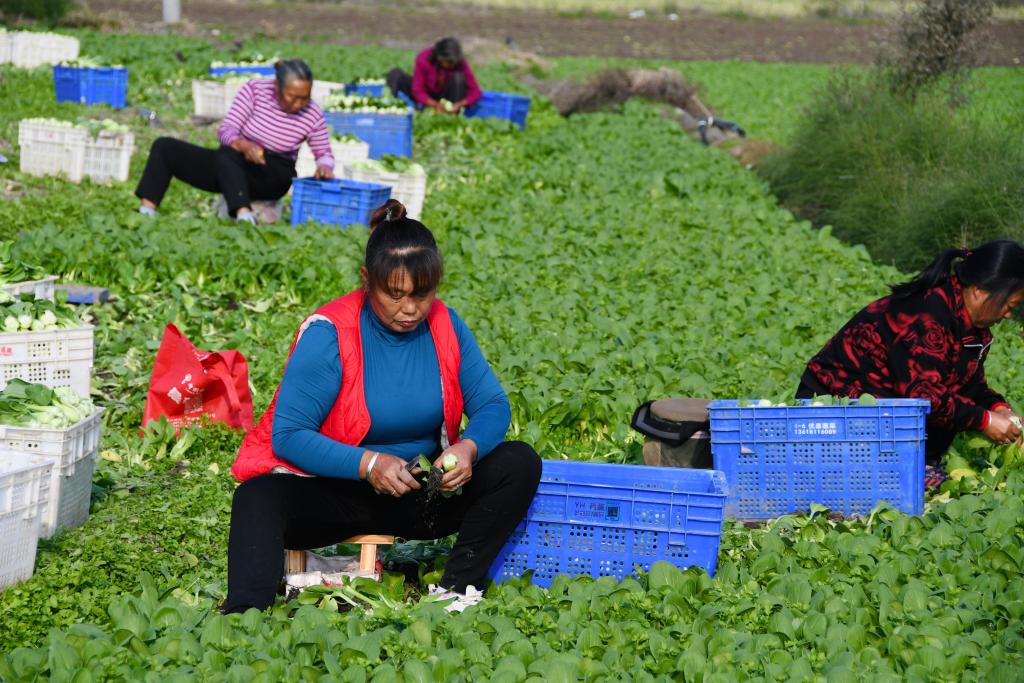 11月28日,三台县立新镇春光村村民正在蔬菜地里忙碌。新华社记者高健钧 摄