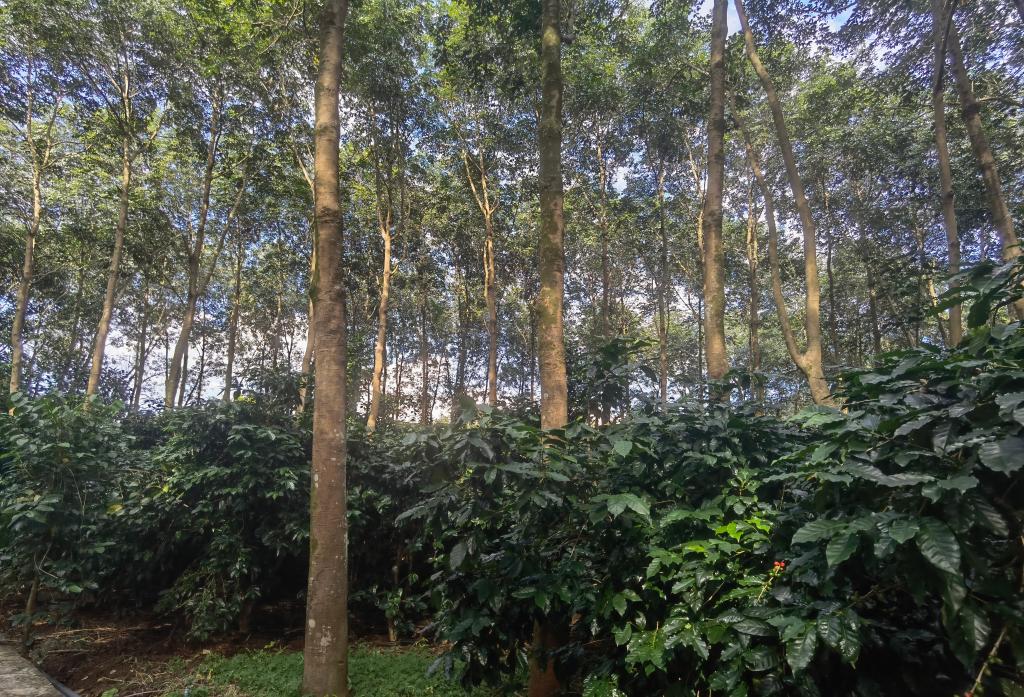 云南省德宏热带农业科学研究所“国家热带植物种质资源库咖啡分库”内,橡胶树与咖啡树间作种植。新华社记者黄韬铭 摄