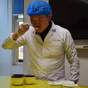 山云辉正在进行咖啡杯测。新华社记者黄韬铭 摄