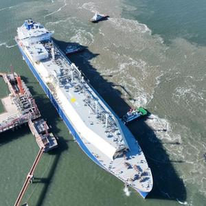 12月1日,“少林”号LNG运输船靠泊在中国石化天津LNG接收站2号泊位进行卸船作业。