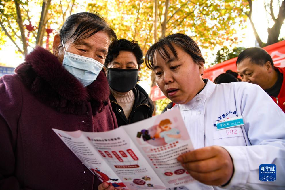 12月1日,在河南省济源市世纪广场,医护人员为市民讲解防艾知识。