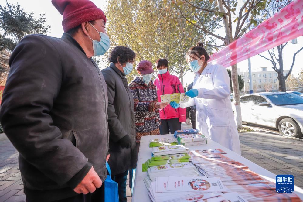 12月1日,河北省遵化市疾控中心的工作人员为市民讲解艾滋病预防知识。