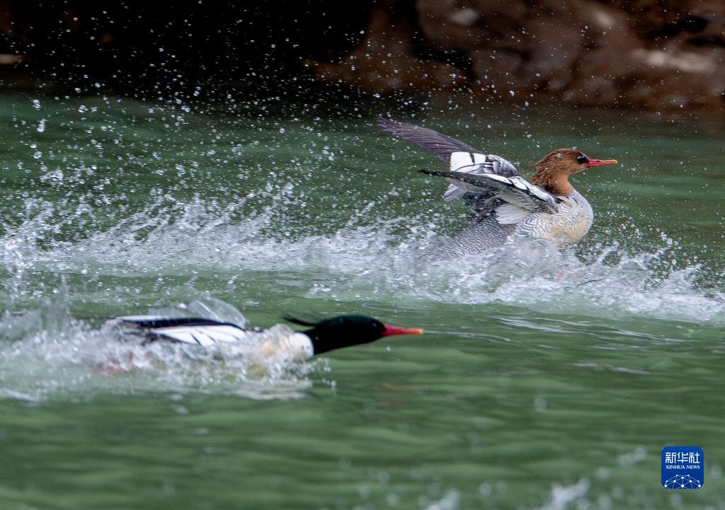 这是在永泰县嵩口镇梧埕村大樟溪流域拍摄的中华秋沙鸭(11月30日摄)。